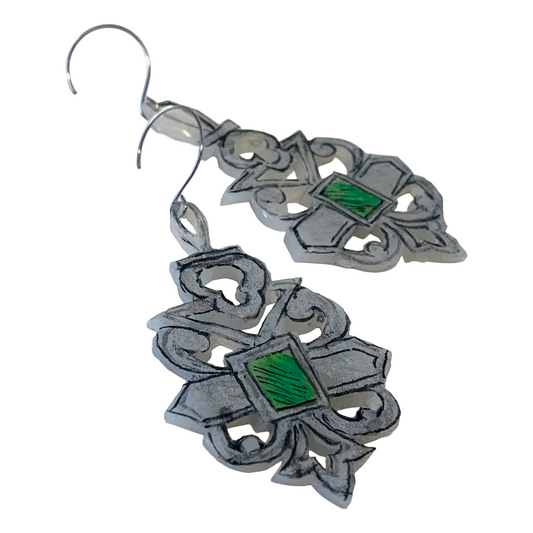 JENNIFER VALMADRE | ‘Silver + Green Gem Earrings | Pigment in Silicon