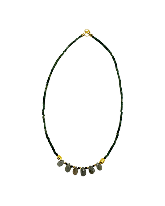ARTIZ | 'Spring Collection Necklace – Short (2') | Green jade / labradorite / bronze