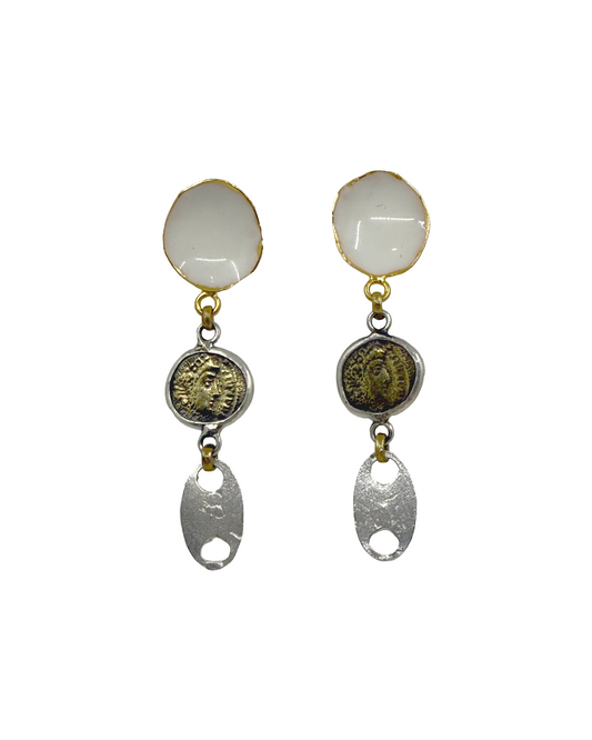 ARTIZ | 'Spring Collection 25 (11)' Earrings | Silver/ bronze / bronze coin/ white enamel