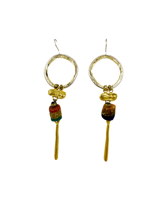 ARTIZ | 'Spring Collection 25 (9)' Earrings | Silver/ bronze / African glass