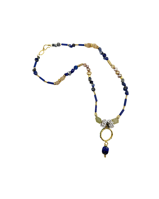 ARTIZ | 'Spring Necklace Collection’ (5) | Lapis lazuli / pearls / brown jade / green jade /antique glass / bronze / handmade beads