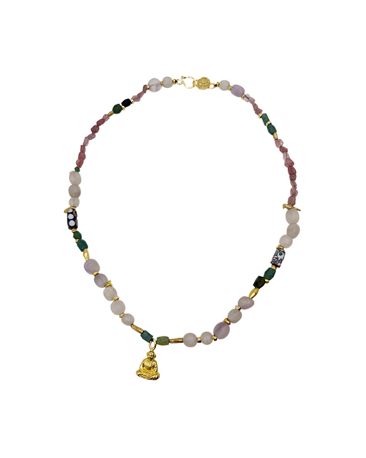 ARTIZ | 'Spring Necklace Collection’ (10) | Gold plated Buddha / African glass / fluorite / amethyst