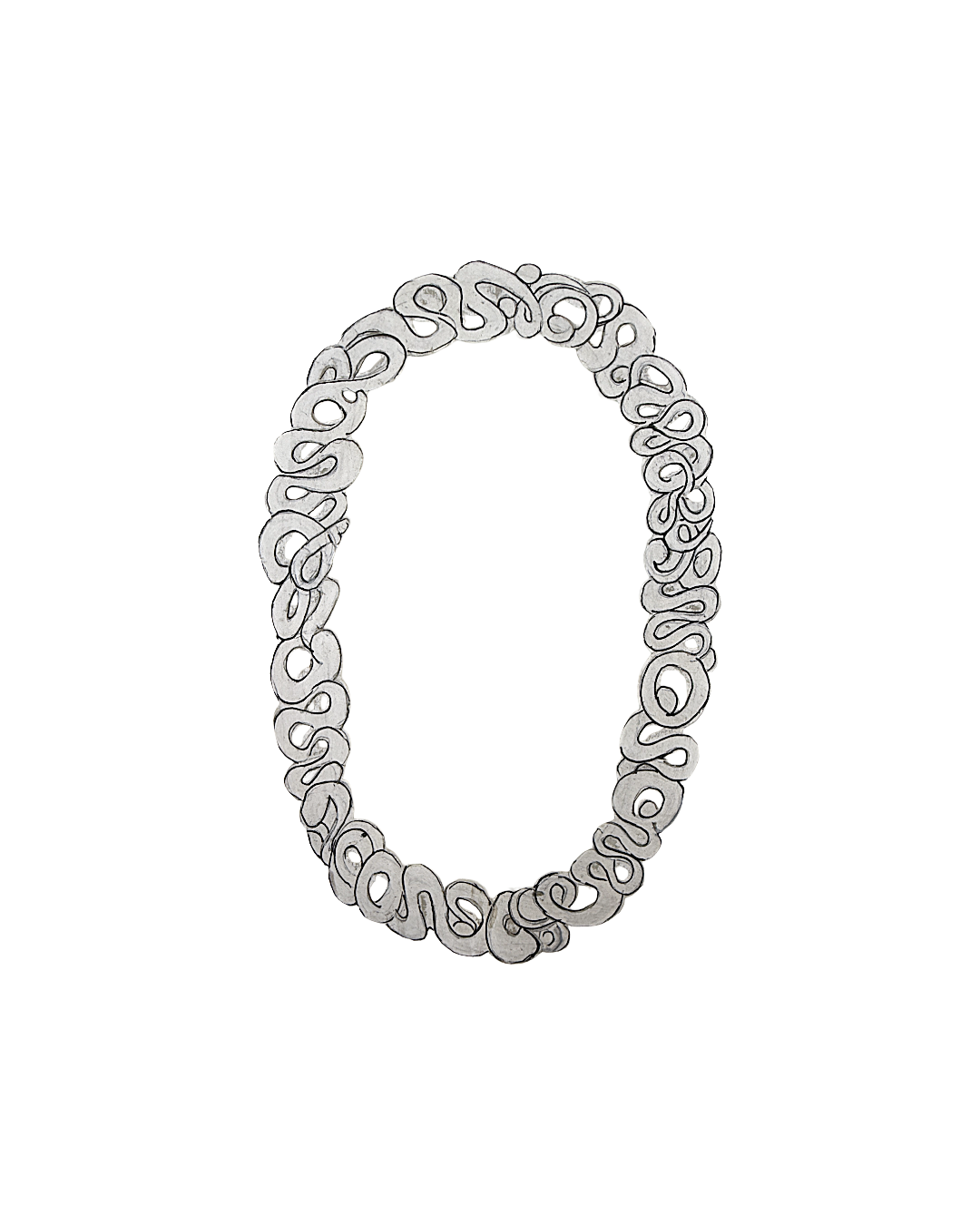 "Essentially, this body of work is the result of my interest in merging drawing and object-making together into a wearable medium. I like the idea of a material that is not associated with adornment and settled on roofing silicone, transforming it into something intimate, rather than industrial. Jellys are the fun of making my doodles wearable." - Jennifer Valmadre