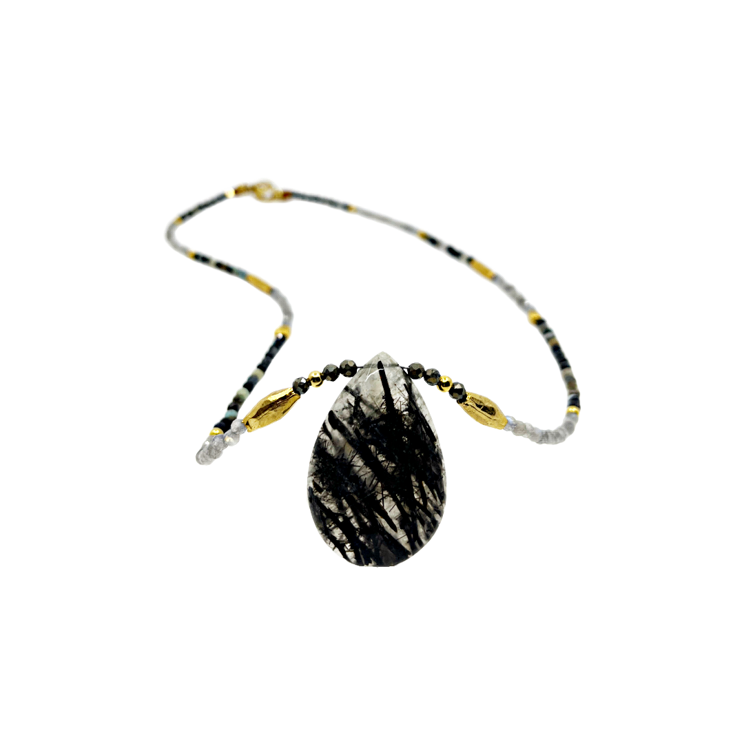 ARTIZ | 'Spring Collection (10)' Necklace | Mixed precious stones / labradorite / black rutiladed quartz / gold plated bronze pieces