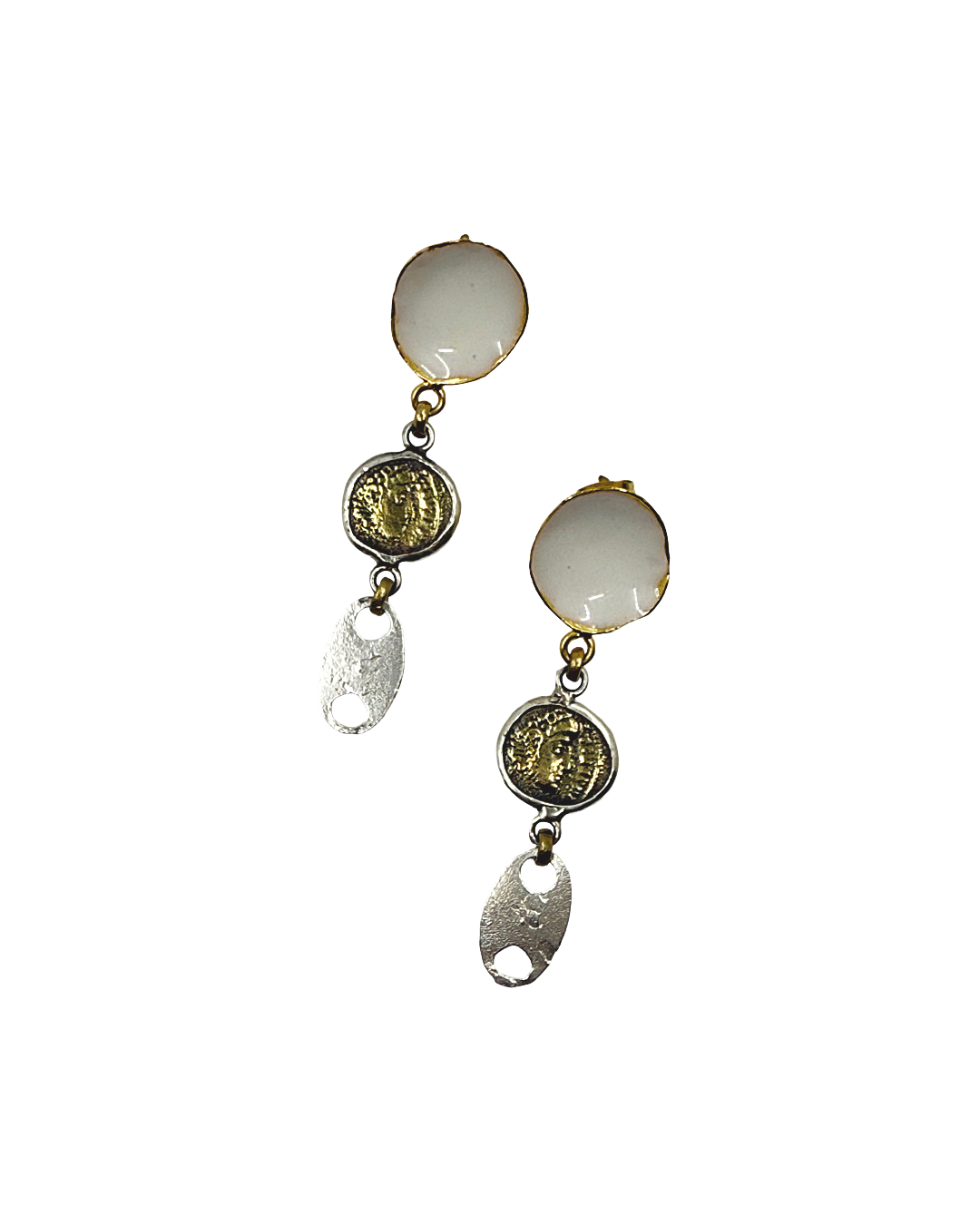 ARTIZ | 'Spring Collection 25 (11)' Earrings | Silver/ bronze / bronze coin/ white enamel