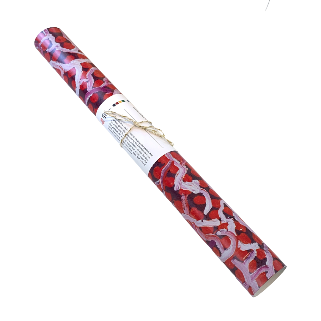 Wrapping paper printed on 100% recycled paper stock with soy-based ink, based on Ethel Thomas's 2007 artwork Love rocks.