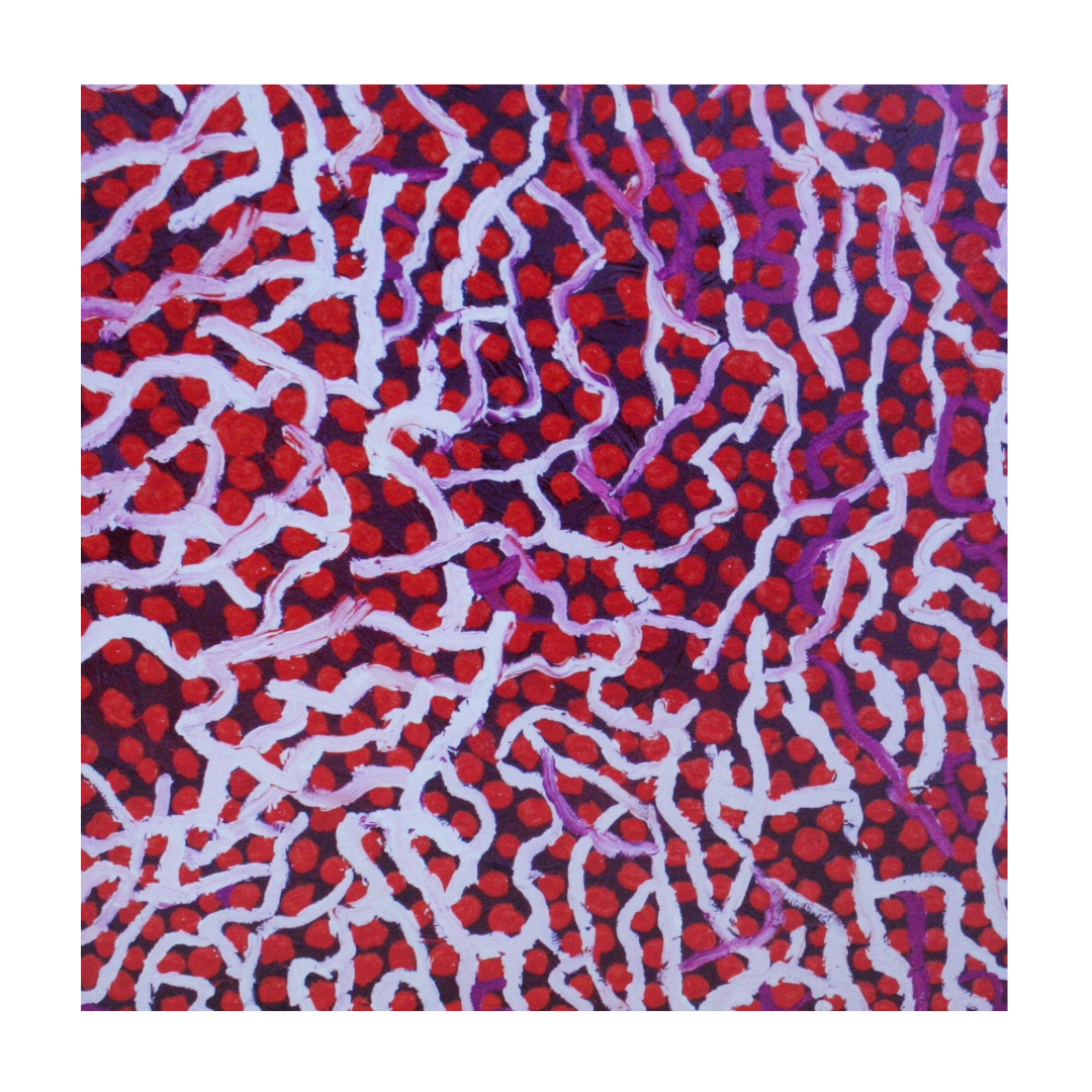 Artwork story: This painting depicts special rocks used by Kayardild women to charm men.