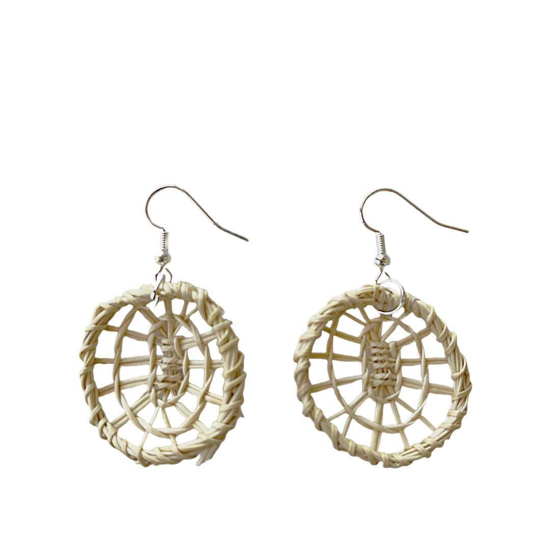 DELISSA WALKER | 'Woven Round Earrings - Natural Black Palm' Small | Stainless steal hooks