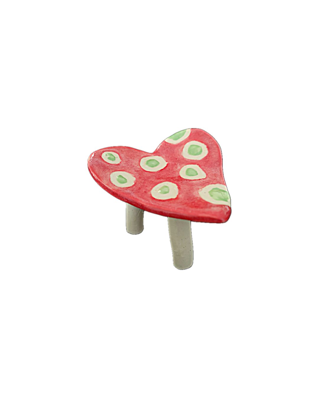FLINTSTONE DESIGNS | ‘Red with Green Spots Heart Dish’ | Ceramic | 7 H x 9 W cm