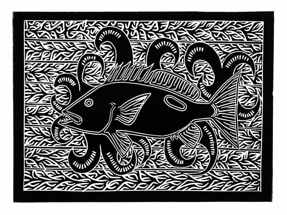 Joel Sam's family lives in Bamaga and originates from Saibai Island. Born on Thursday Island, he currently lives in Cairns, having finished his art studies in 2005 with a Diploma of Art from the Aboriginal and Torres Strait Visual Arts Course at the Tropical North Queensland TAFE. Over the last 4 years he has been developing an art practice and technical skills in the medium of the linocut. Joel's artworks are inspired by his culture, and the images are of sea creatures that live in and around the Torres Strait, such as turtles, squid, the fish of the reef and the shells and corals of the Coral Sea. Joel is a regular exhibitor at KickArts, and Djumbunji Press is publishing several of his new prints.