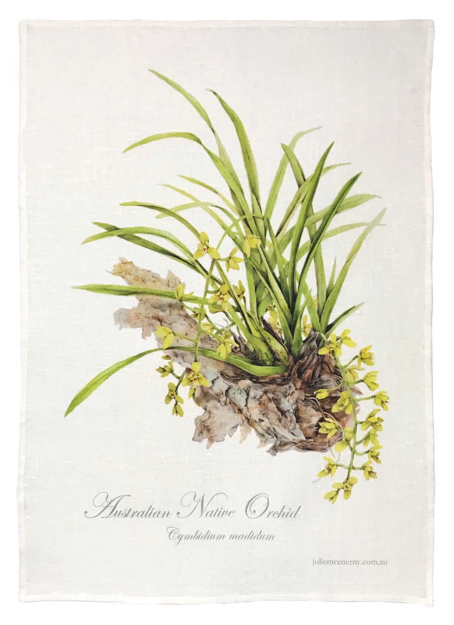 JULIE MCENERNY | ‘Native Orchid Tea Towel: Cymbidium madidum’ | 100% linen