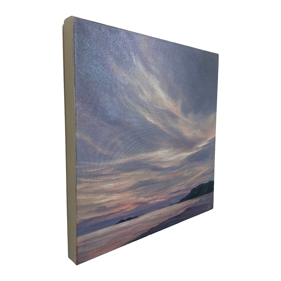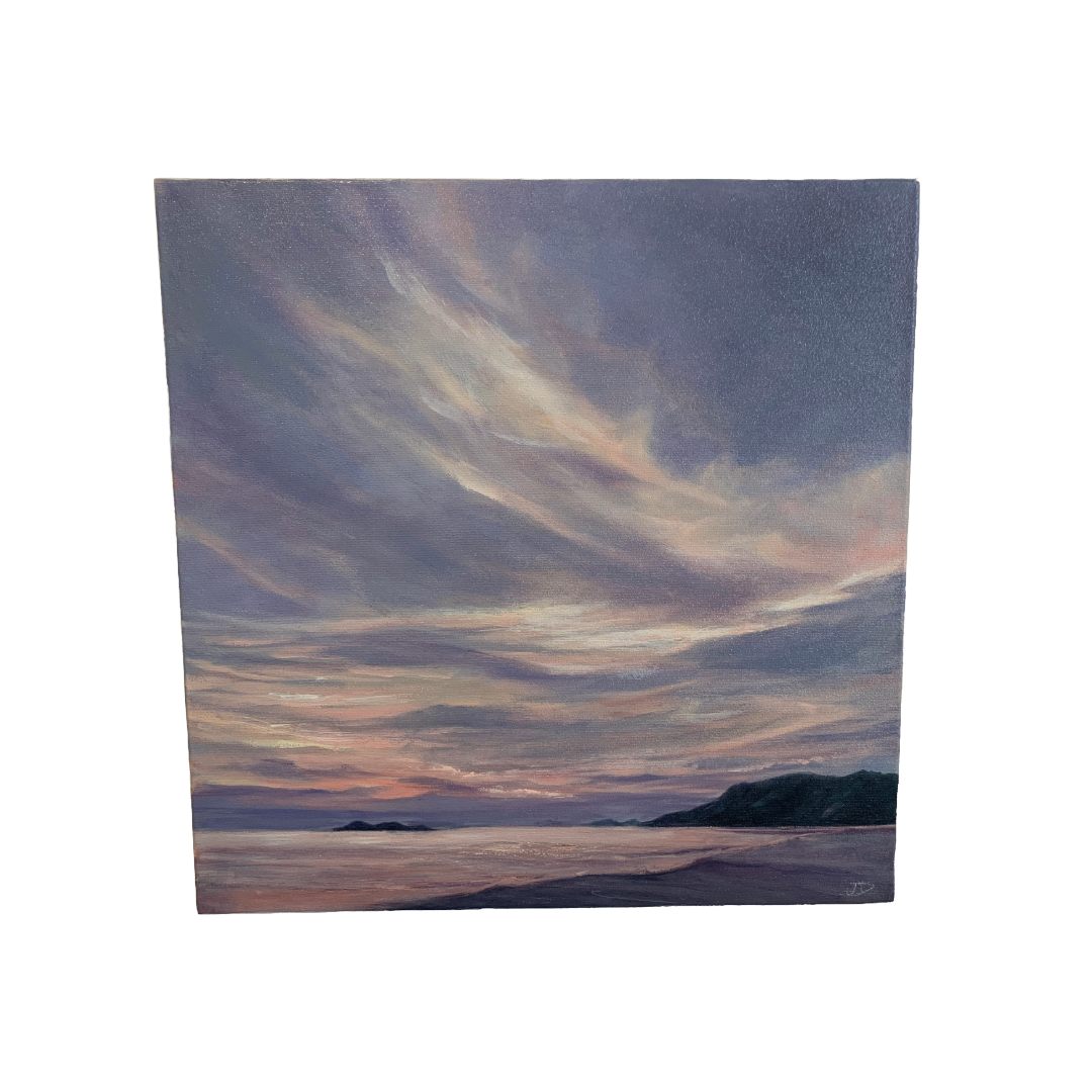 LOU DERRY | ‘Beach at Dusk’ | 2025 | oil on canvas | 50 x 50 x 3.5 cm