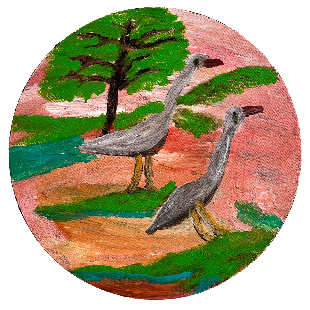 DOLLY LOOGATHA | ‘Birds Taking A Walk’ | 2020 | Acrylic on board | 30.5 (dia) cm