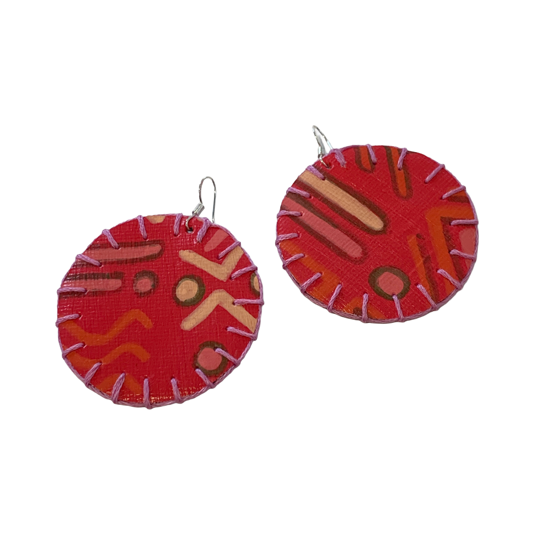"Anyone that knows me, knows I absolutely love BIG earrings! Just not a fan of the weight that comes with it a lot of the time… So, I created a line of earrings, mixing and matching off cuts of leather, screen printed material and hessian, acrylic and coffee on canvas, merged with embroidery to create light weight wearable art! These are all handmade, using a very sustainable arts practice with at least 80% of resources up-cycled. Enjoy your sustainable bling… and have a beautiful day. Much love, Mum’a Nai" Mum’a Nai is an emerging artist born in Cairns, with a love for textile art. Her work focuses on having an earth friendly sustainable practice, repurposing used, damaged and discarded items, exploring the notion of beauty and function. Her style is a cross over between traditional and contemporary craft and conceptual art. Influenced by her parents and grandparents who were all creative in a variety of ways and instilled a deep-seated value around repurposing.