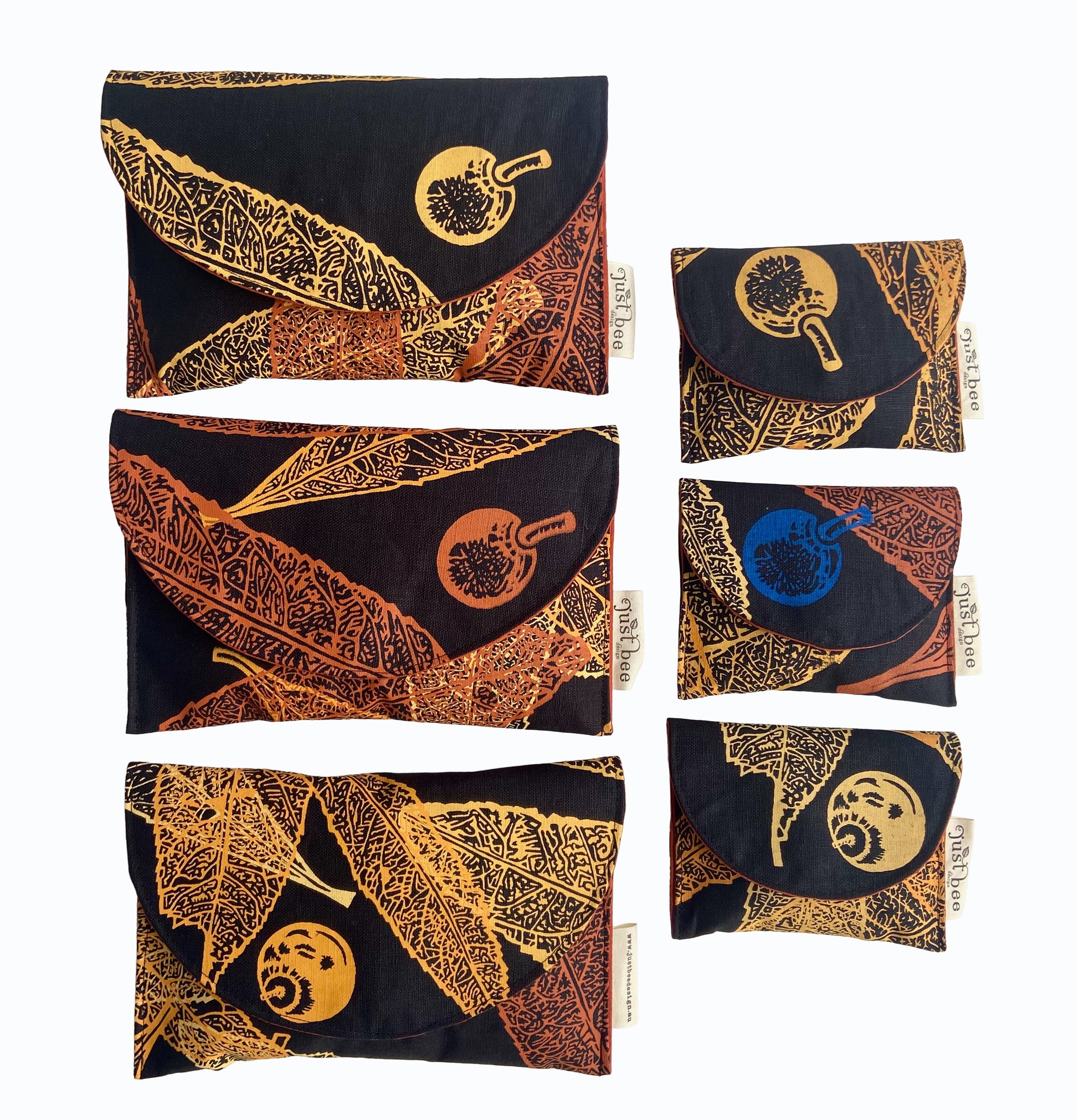 JUST BEE DESIGNS | 'Blue Quandong Pouchlet / Wallet No.1' | Pure linen / screenprint