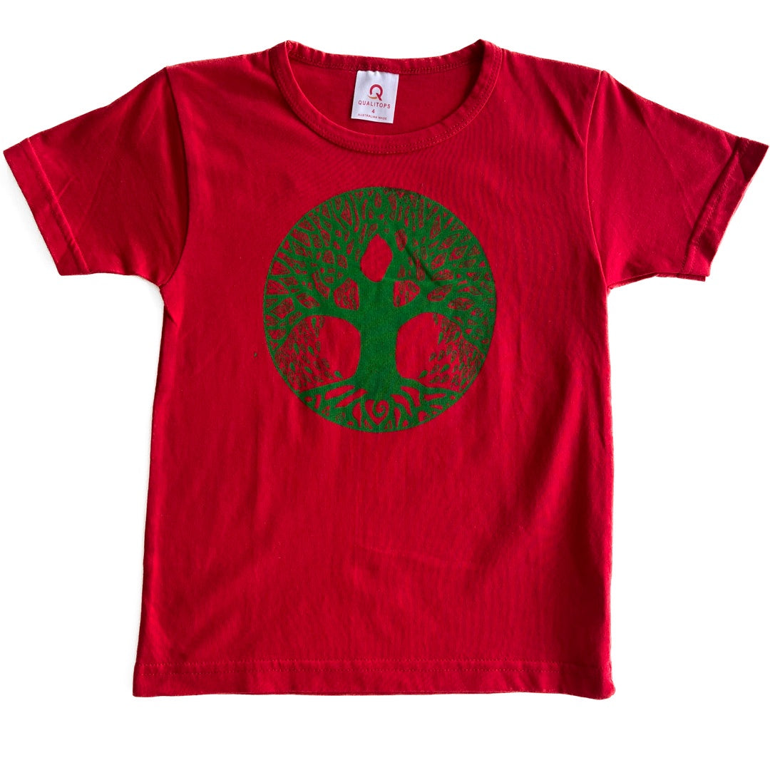 BIRDTRIBE WEARABLE ART | 'Eco Kids Clothes - Red Shirt + Green Tree' | 100% Cotton / Screen-printed in Australia