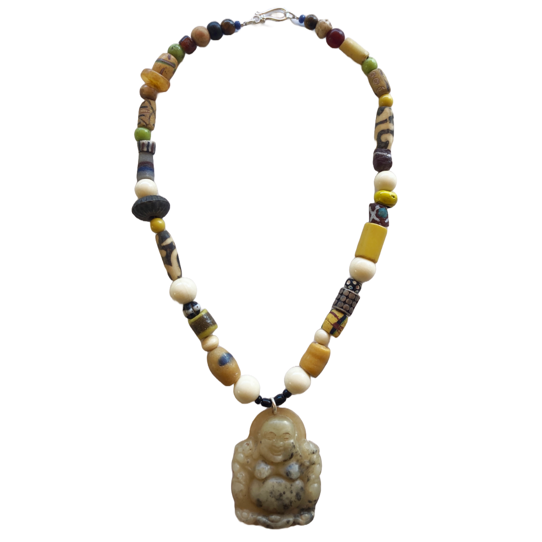 PEARL AND SALTY PLUM | ‘Buddha Pendant Necklace’ | Mixed media